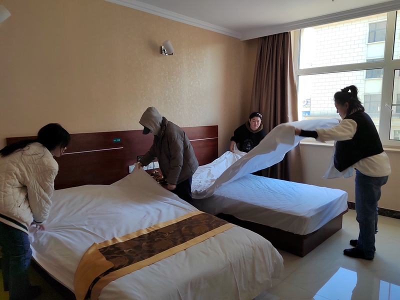 為了盡快恢復(fù)食堂,公寓樓場地使用,公司員工和學(xué)校老師一起參與學(xué)?;謴?fù)工作。大家一起搬運公寓樓床鋪、知味樓餐桌恢復(fù)原樣、打掃校園內(nèi)的衛(wèi)生死角,學(xué)校的每一個角落都有著他們的身影和汗水。在保證來參加拓展培訓(xùn)的學(xué)生及社會團體安全的同時,做到環(huán)境衛(wèi)生綜合整治達標(biāo)、營造整潔優(yōu)美的校園環(huán)境。