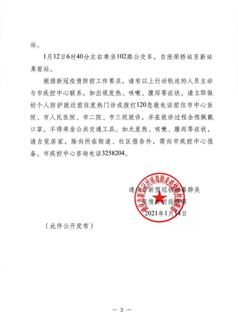 關(guān)于我市無(wú)癥狀感染者乘坐公交車(chē)行程軌跡的通告